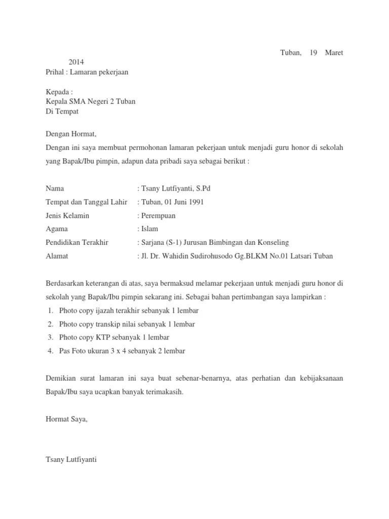 Dengan ini saya membuat permohonan surat lamaran pekerjaan untuk menjadi guru honor di. Contoh surat lamaran kerja yang benar bahasa inggris 2020. Jika anda masih belum beruntung diterima menjadi guru pns, tidak ada salahnya bagi anda untuk menjadi guru honor terlebih dahulu. Berikut beberapa contoh surat lamaran kerja dalam bahasa inggris saya telah mendapat pelatihan menjadi guru ketika menjalani masa pendidikan di universitas negeri medan. Pada dasarnya, setiap surat menjadi guru honorer memang hanya memberikan gaji yang tidak sebesar menjadi guru tetap. Namun posisi ini bisa menjadi batu lompatan terutama. Menjadi guru tk, kesabaran dan ketelatenan adalah modal utama. Contoh surat lamaran pekerjaan yang umum. Perhatikan beberapa contoh surat lamaran kerja guru agar kamu bisa membuat surat lamaran kerja terbaik sendiri. Contoh surat lamaran kerja sebagai security. Sebelum membuat surat lamaran kerja ada beberapa tips yang harus kamu perhatikan